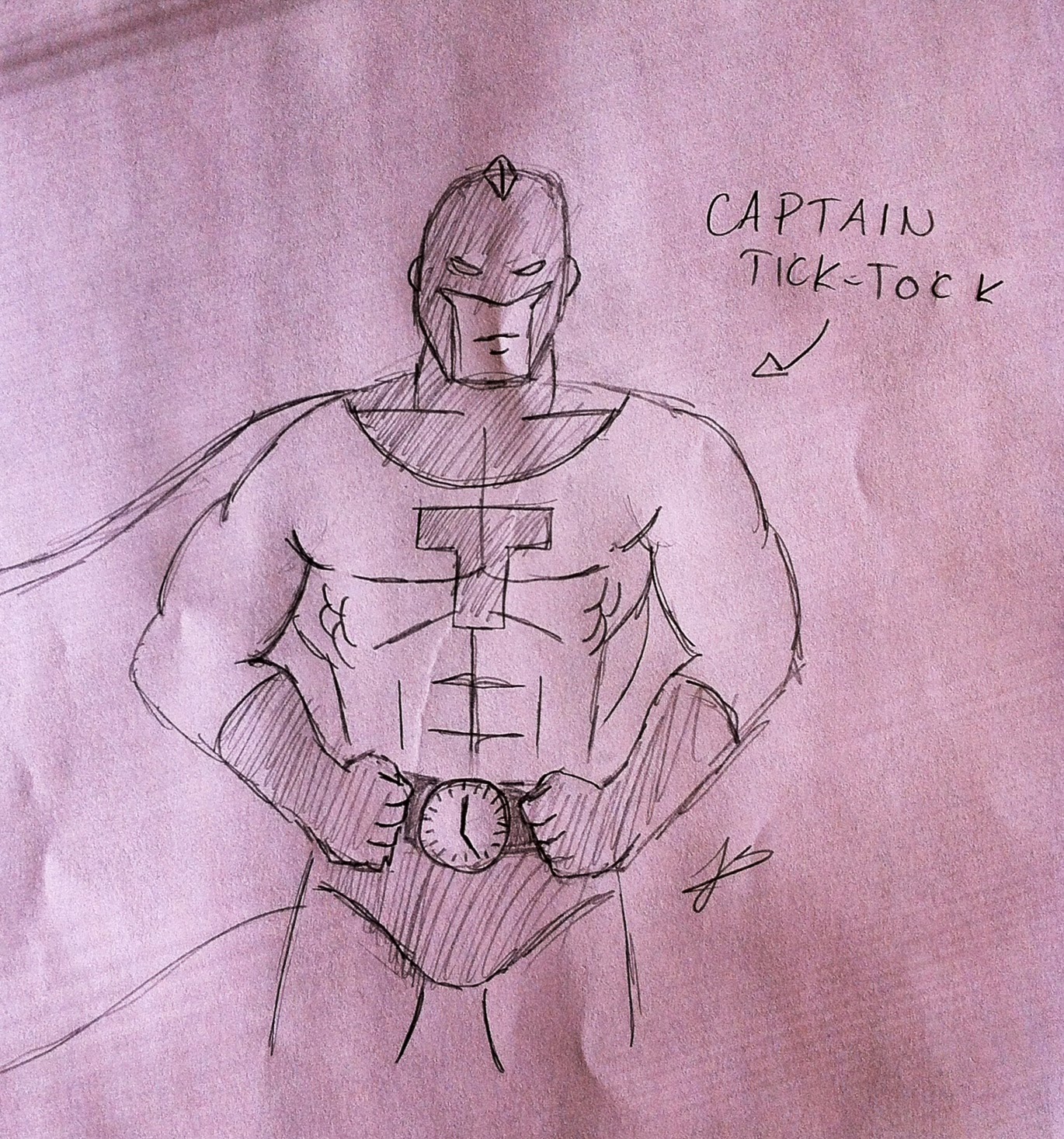 He went back to his pages filled with superhero drawings. I had a feeling Captain Tick Tock was about to be added there.